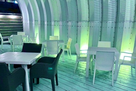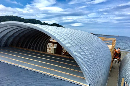 chi-manは逗子海水浴場の海の家です。逗子海岸の鎌倉方面寄り、柱のないアーチ構造のユニークなスチールの建物となります。国道134号線沿いの「ラ・オハナ」と「夢庵」が目印です。
