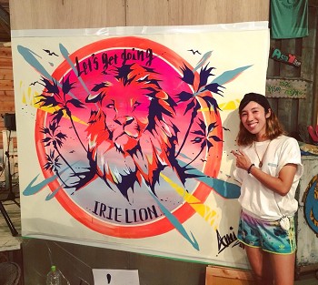2019/7/6のオープン初日から、Chi-man店内の5メートルの壁に鎌倉市在住のフリーペインター大塚亜美氏がライブペイントを行いました。